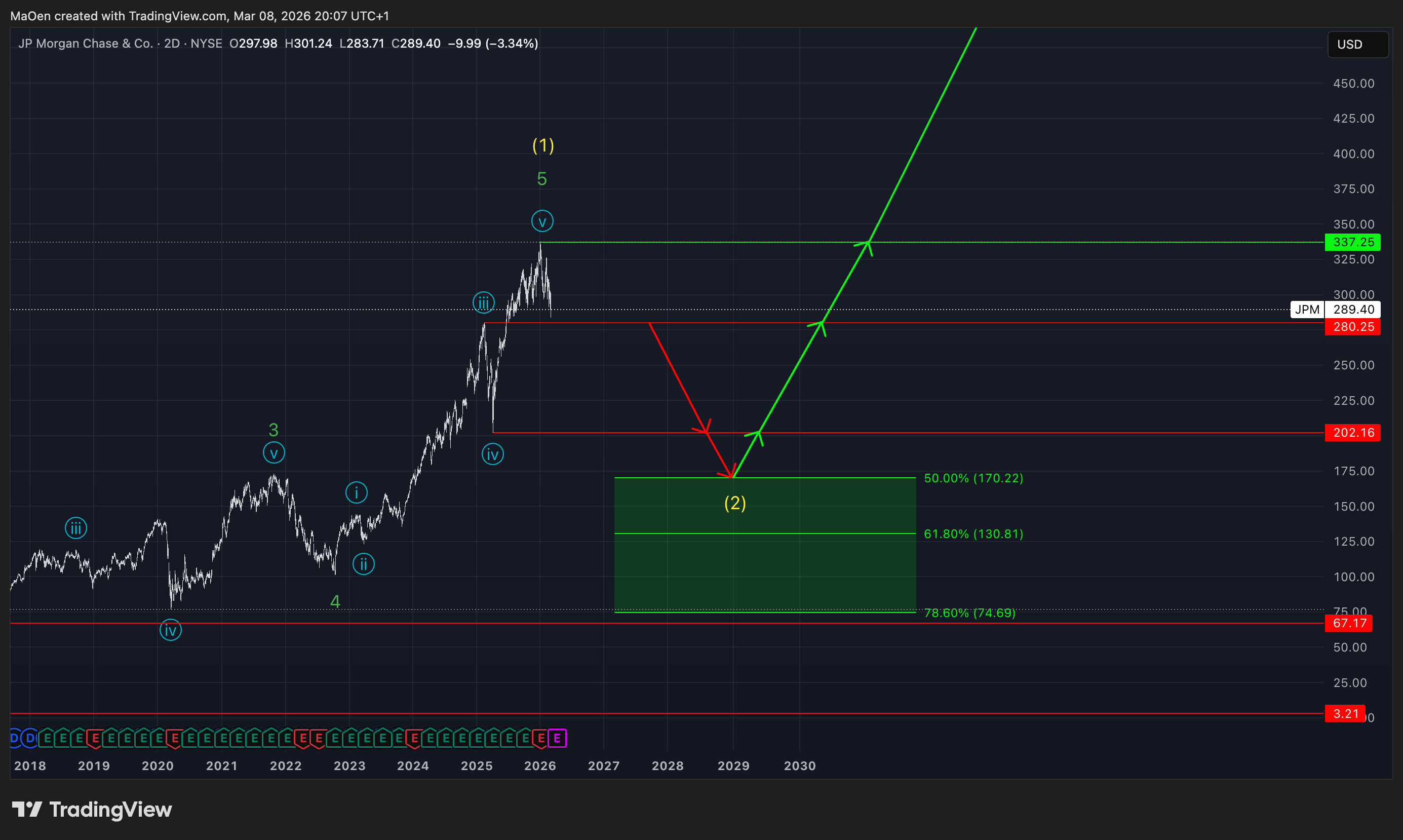 JP Morgan is approaching a long-term corrective phase.